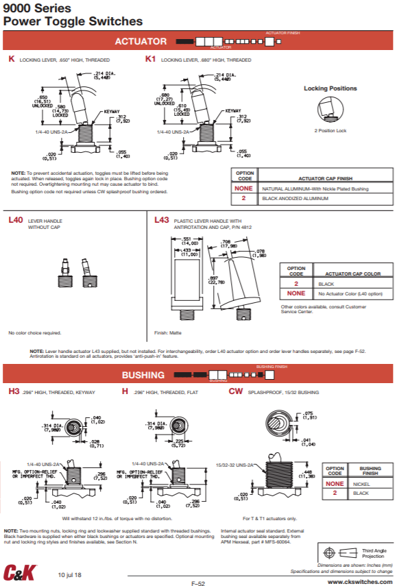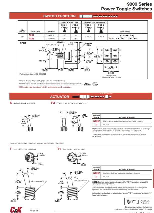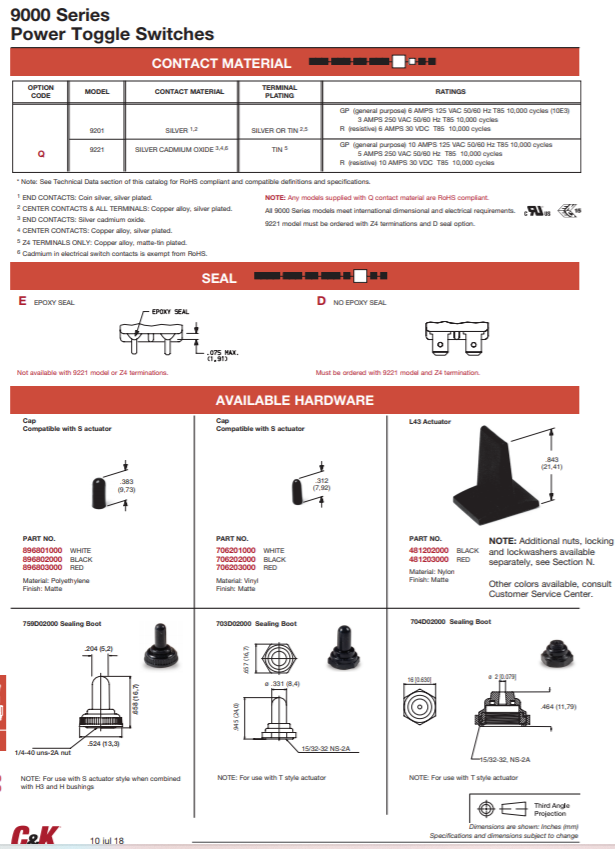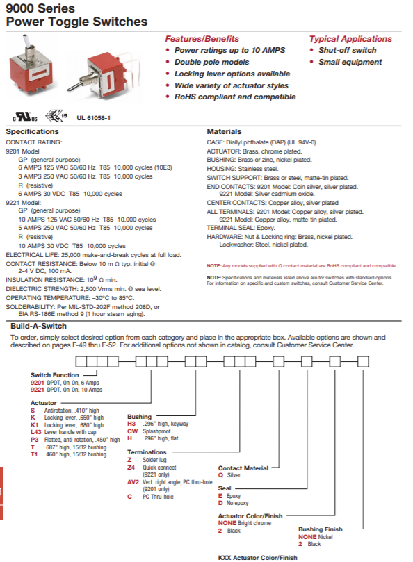 作为一个关闭开关或小型设备的完美使用,C&K的9000系列电源开关有多种选择,以满足设计师的需要。9000系列开关有高达10安培的功率等级,有各种各样的执行器类型,有可选的锁杆,并可作为双极型号使用。